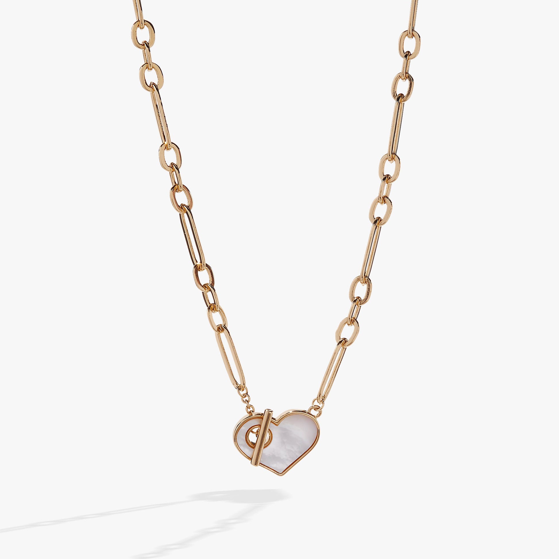 A symbol of love in all its forms, the heart isn’t just our emotional center — it’s where everything begins, and where everything returns. This Mother of Pearl Heart Toggle Necklace is a chain necklace with a unique closure: it’s a genuine mother of pearl heart charm with a space for the toggle clasp to fit through. Wear it as a reminder that with an open heart, all things are possible.